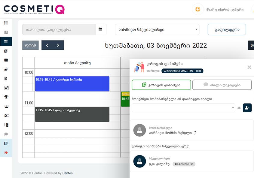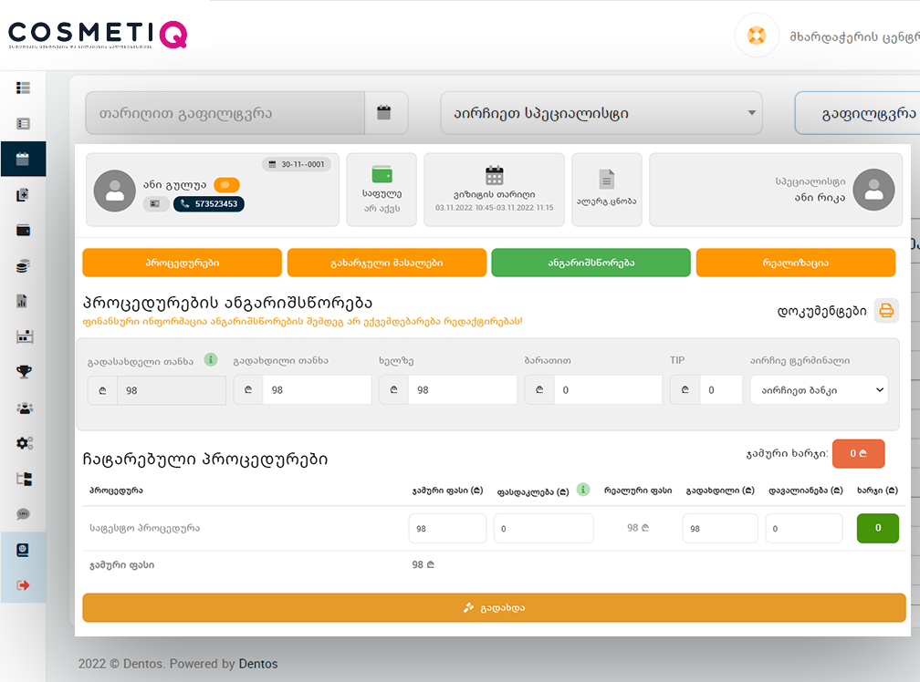 დანიშნე ვიზიტი სპეციალისტთან და მართე ჩატარებული პროცედურები, ფინანსები და გამომუშავებული თანხები.