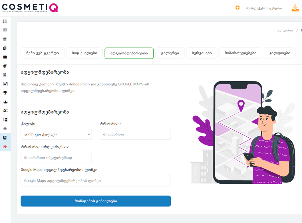 წარმოადგინე შენი ესთეტიური ან სილამაზის ცენტრი, მიიღე ჯავშნები, გაზარდე ცნობადობა, ვიზიტები. გაზარდე მომხმარებელთან კომუნიკაცია.